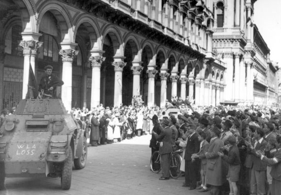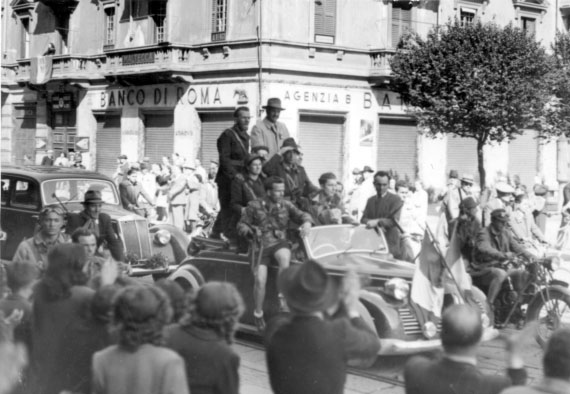 Партизаны-гарибальдийцы, вошедшие в итальянские города раньше англо-американских войск, 1945 г.