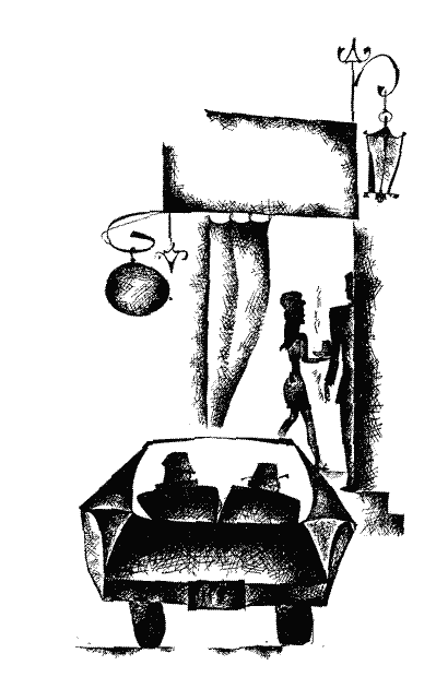 Полковник пересів на інший стілець, влаштувавшись спиною до молодика, налив собі віскі, сильно розбавивши содовою. Тепер він міг бачити лише зади відвідувачів, що сиділи на високих табуретках біля бара. Ця не дуже приваблива картина нараз заспокоїла полковника, він повільно спорожнив склянку, забувши про рожевощокого.