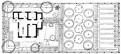 Во время проектирования участка также потребуется геодезический план, в котором указаны трассы подземных коммуникаций и уровень грунтовых вод. Его можно получить у главного архитектора района, в котором располагается ваш участок. Необходимо знать, в каком месте проходит под землей газопровод, и не высаживать на этом участке деревья с мощной корневой системой. Затем составляют список композиций из растений. Важную роль при планировании композиции играет расположение выбранного для нее места в общем композиционном плане. Необходимо определить, будет ли она располагаться перед основным входом в дом, на второстепенном участке, входящем в поле зрения, или на заднем плане, скрытом от глаз.