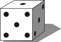 Вот игральная кость (черт. 62): кубик с обозначенными на его гранях очками от 1 до 6. Петр бьется об заклад, что если бросить кубик 4 раза подряд, то за все четыре раза кубик непременно упадет один раз единичным очком кверху.