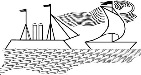 ЗАДАЧА № 93 Два корабляПеред вами (черт. 65) два корабля: пароход и парусник. У которого из них палуба длиннее?