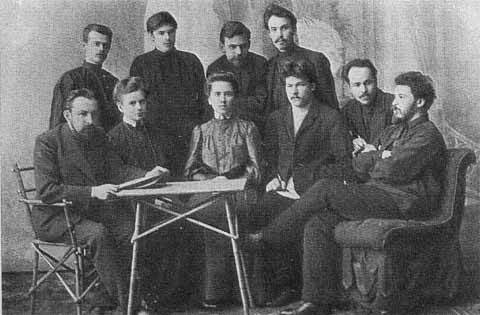 Симбирские большевики. 1905 год. Д. И. Ульянов — сидит первый слева, первый справа— З. П. Соловьев.