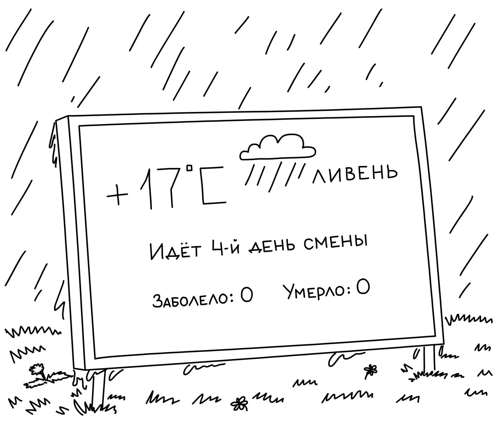 которые задорно носились по небу с самого утра, после обеда решили объединиться, в результате чего на землю обрушился мощный ливень. Стало холодно, мокро и противно. А огромный уличный экран, установленный рядом со столовкой, не давал никакой надежды на скорое улучшение погоды.Поэтому остаток дня мы провели в домике, играя в настолки. Никогда бы не подумал, что дойду до такого, но «Шакал» мне реально понравился.