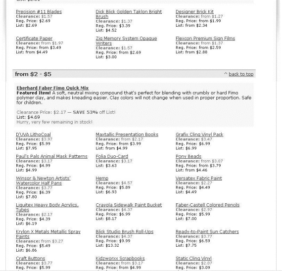 Эта страница выглядела почти зловеще – сплошной текст и ни одной картинки. В списке из 96 предметов, продаваемых со скидкой, было лишь три строки с папками-портфолио (всего в магазине продавалось 45 наименований этого товара). Признаться честно, совсем не этого мы ожидали от «огромных скидок».
