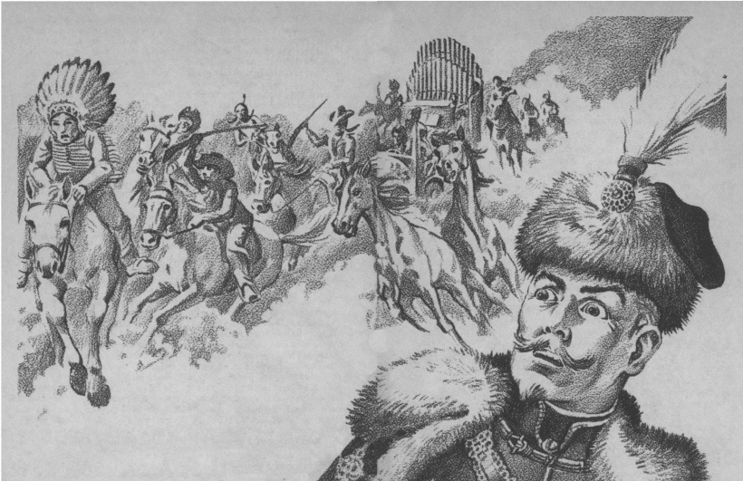 Тишину нарушает лишь чуф-чуф, чуф-чуф очень маленького маневрового локомотива величиной с очень большой самовар, на смежной сортировочной станции. На платформе зевает дежурный по станции, застёгивая китель и доедая свой завтрак — кусок хлеба, намазанный гусиным жиром. Довольно споро приближается мужчина, гораздо младше и в гораздо более щегольском мундире. Некто в сюртуке и красно-сине-чёрном кушаке стоит в сторонке, устало помаргивая.