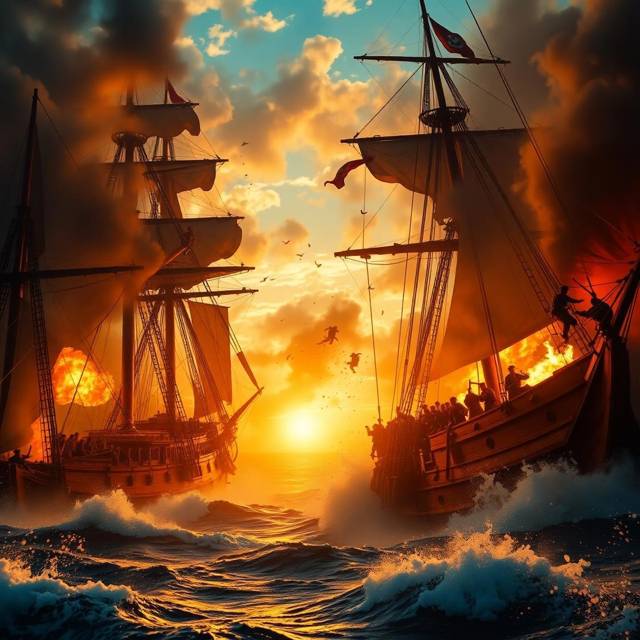 Огненная стена неслась на нас, изрыгая жар и клубы черного, удушливого дыма. Флагман Кокса, превращенный им в гигантский брандер, стал орудием отчаяния, последним аргументом проигравшего игрока. Расстояние таяло на глазах — два кабельтова, полтора… Рев пламени, пожиравшего дерево и смолу, перекрывал грохот боя, а невыносимый жар уже заставлял отступать от