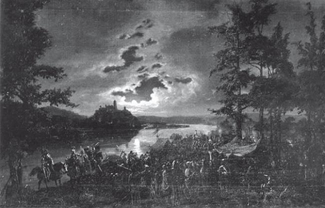 В 1837 г. появилось полотно уже представителя Виленской художественной школы Винцента Дмоховского / Wincenty Dmochowski (1805/07-1862) «Крестоносцы перед атакой замка Пуня» [215] (Ил. 2). Это произведение, среди прочего, иллюстрирует тенденцию фактического наложения двух сюжетов – события, описанные Вигандом Марбургским вокруг Пилен в 1337 г., стали переноситься на рейд 1382 г. в землю Пуня («in terra Punnow»), также описанный Вигандом Маргбургсим [216] . Дмоховский создал свое произведение в 1837 г., после возвращения на Родину по амнистии участников Восстания 1830–1831 гг. [217] . Возвращение художника совпало с 500-летнем битвы в Пиленах.