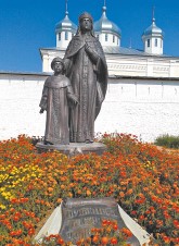 династии РомановыхНеслучайно, что рядом именно с таким городом, а ныне это городская черта, был возведен монастырь, посвященный великомученику Георгию Победоносцу. Первоначально, в XV в., он был построен почти в 27 километрах от Мещовска, на берегу реки Рессы, но в смутные времена был разорен и разрушен поляками. Возрождаться стал уже на новом месте, в XVII в., стараниями Евдокии Стрешневой – первой царицы из рода Романовых, жены Михаила Федоровича Романова, которая вышла из этих мест. Имя ее ныне увековечено, при входе в монастырь стоит памятник с надписью: «Праматери династии Романовых».