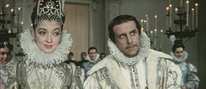 Альтисидора вводит Дон-Кихота. Приседает. И отходит в сторону, смешивается с толпой придворных. Оттуда жадно вглядывается она в лица герцога и герцогини. Да и не она одна. Все напряженно глядят на герцогскую чету, стараются угадать, как приняты гости.