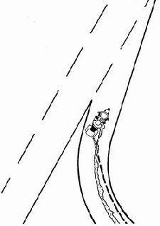 Деревья закрыли вам изгиб, поэтому вы слишком поздно заметили, что передние машины зажгли стоп-сигналы. Вы закрыли газ и резко нажали на передний тормоз. Поскольку