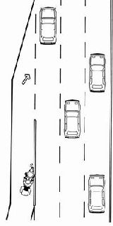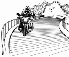 Иногда разгонные полосы отделяются от остальных невысоким бордюром, поверх которого нарисована разметка. Перестраивайтесь там, где сплошная линия становится прерывистой, там бордюра точно нет. Будьте предельно внимательны при пересечении любой сплошной линии разметки. Даже если она чуть-чуть приподнята над дорогой, переднее колесо может попасть в ловушку. В такой ситуации контрруление невозможно, а значит равновесие удержать не получится.