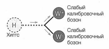Если бозон Хиггса, вопреки ожиданиям, окажется действительно тяжелым — вдвое с лишним тяжелее, чем W–бозон (но менее чем вдвое тяжелее истинного кварка), то искать его будет относительно несложно. Тяжелый хиггс будет практически всегда распадаться на пару W- или –бозонов (на рис. 52 показана схема распада на W–бозоны). Экспериментаторы знают, как распознать получившиеся при этом частицы, так что бозон Хиггса можно будет обнаружить без большого труда.