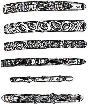 Железная игла была в прошлом у айнов большой редкостью. Раньше шили костяными или деревянными иглами. На Курильских островах айны при шитье использовали кости лисы. В качестве ниток использовались жилы оленя и морских животных.