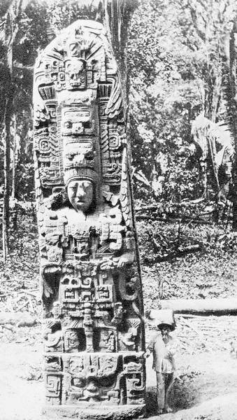 Илл. 30. Самая высокая стела майя – стела D из Киригуа (Гватемала). Ее высота достигает 10 м, а записанная на оборотной стороне иероглифами дата соответствует 19 февраля 766 г.