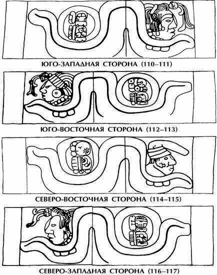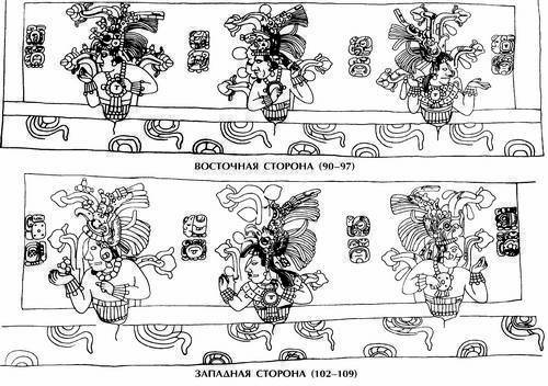 Илл. 48. Прорисовка боковых сторон саркофага в Паленке