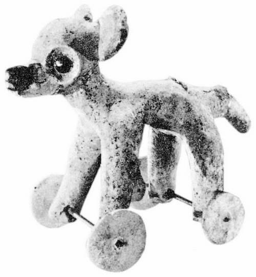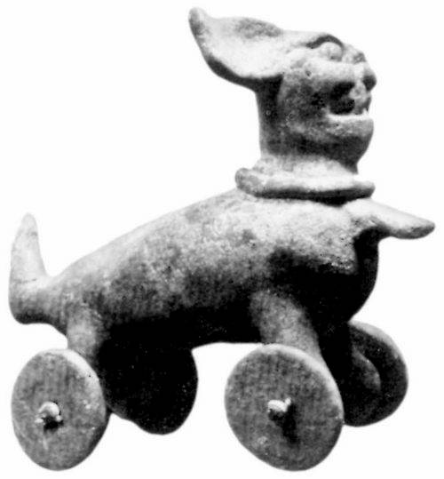 Илл. 67. Эти игрушки V–VIII вв., изображающие ягуара и собачку, опровергают предположения о том, что индейцы не могли додуматься до колеса. Повозки в Новом Свете не появились только потому, что здесь на момент создания развитых цивилизаций не было тягловых животных