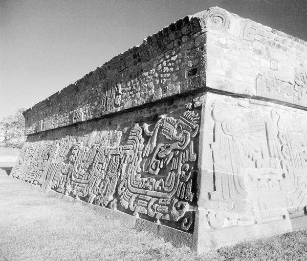 Илл. 71. Фасад пирамиды Пернатого Змея, или Кецалькоатля, в Шочикалько. Как утверждают исследователи, это сооружение имело, помимо религиозного, и явное астрономическое значение