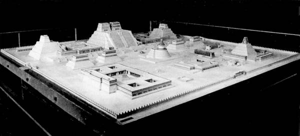 Илл. 72. Реконструкция церемониального центра Теночтитлана, позволяющая представить всю мощь и пышность империи астеков, поразившей воображение испанцев