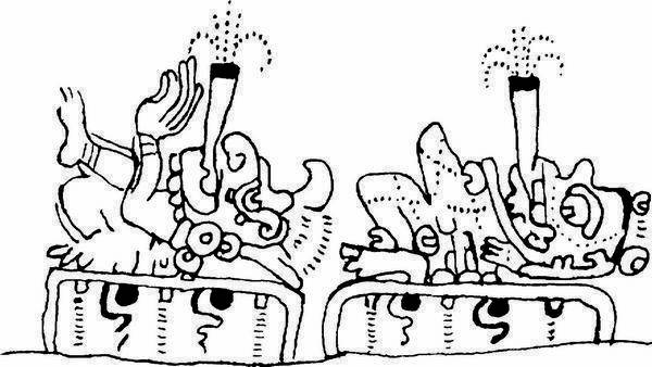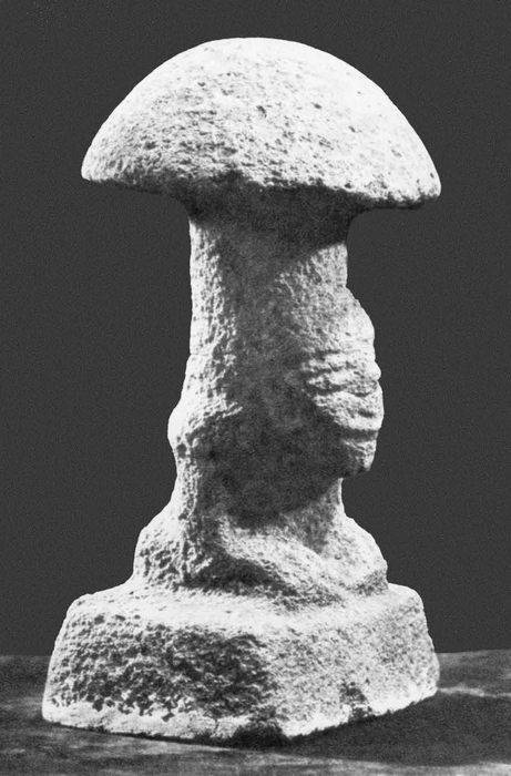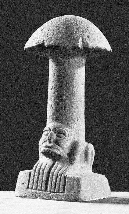 Илл. 79. «Каменные грибы» – изображение грибов-психоделиков. Примерно 2000 г. до н. э. Шаманы горной Гватемалы (Каминальхуйу) использовали подобные средства для вхождения в состояние транса и облегчения «видения»