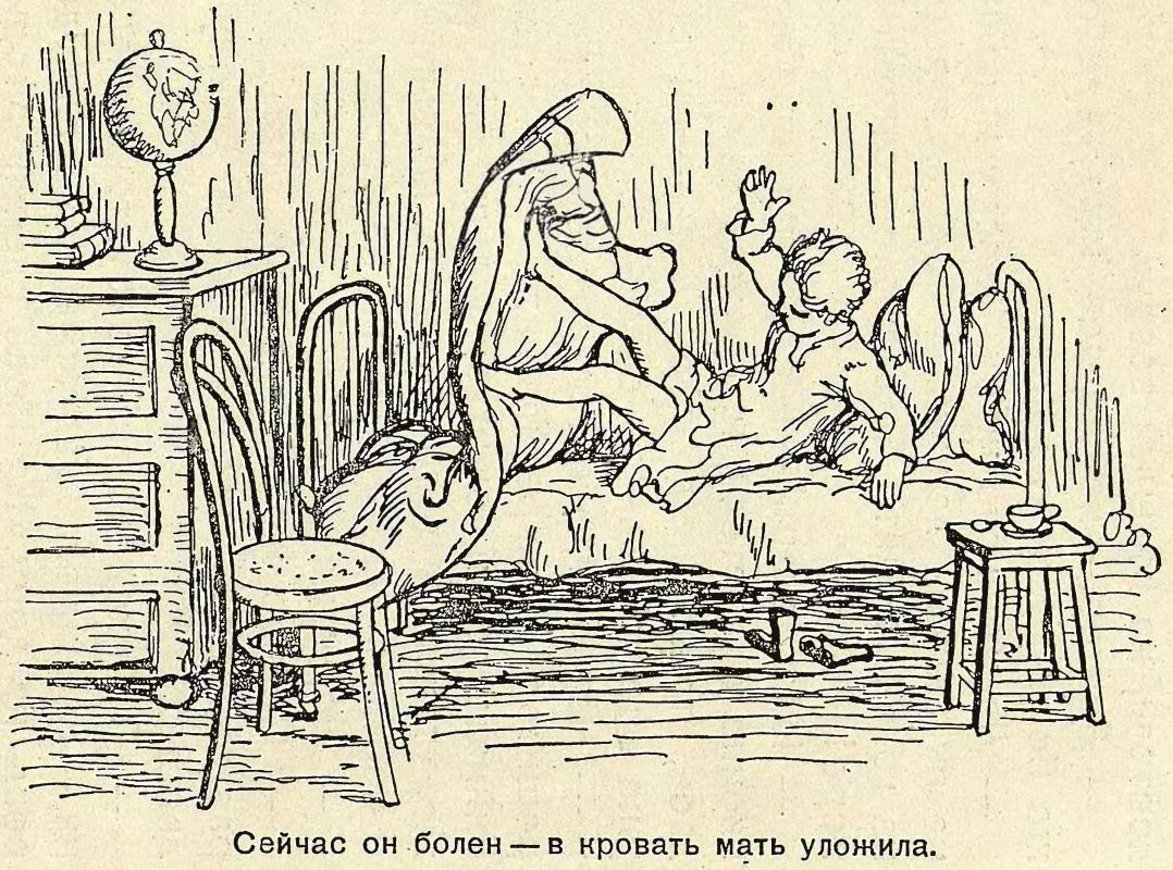 – - Ну, это мы посмотрим, -- смеется доктор, снимая с Гани кепку и щупая лоб:-- что ж... Жара у нас нет, пульс хороший. В легких... все превосходно. А ну, горло? скажите: "а", еще "а". Так-с. Сегодня мы совсем молодцом. Можно сниматься с якоря. Завтра же долой с постели, на вольный воздух!