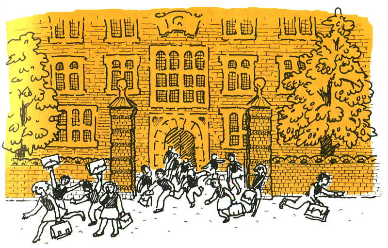 А люди, которые жили напротив школы, и подавно не могли спутать субботу ни с каким другим днём. По субботам толпа ребят вырывалась из ворот школы, словно вода из пожарного шланга, и с шумом растекалась в разные стороны. «В субботу они как осиный рой», — говорили жители Яблоневого переулка.