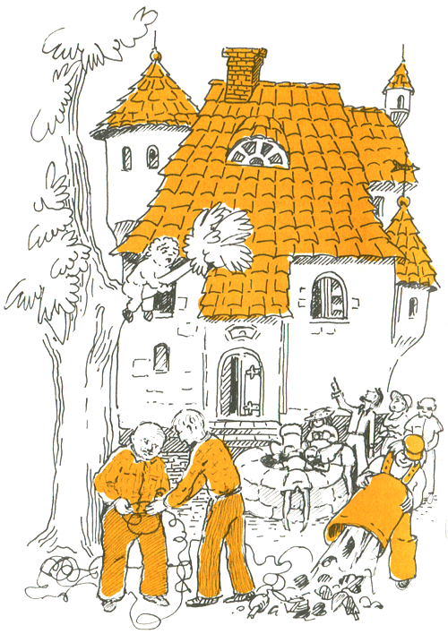 Но поскольку Бруно вопил на своём каштане всё громче и громче, дедушки приняли решение принести во двор стремянку с пятнадцатью перекладинами из мастерской покойного прадедушки-скульптора.