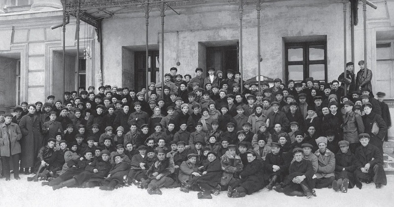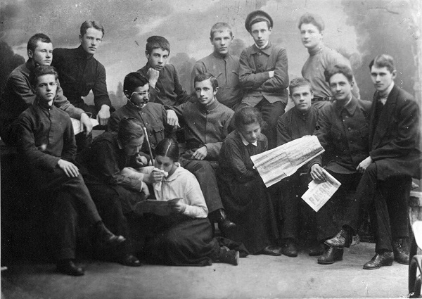 «Всякая революция лишь тогда чего-нибудь стоит, когда она умеет защищаться…». Вот наш бывший кружок осенью 17-го. Косы безжалостно сострижены, гимназическая форма с презрением снята, сменяна на гимнастерки и папахи.