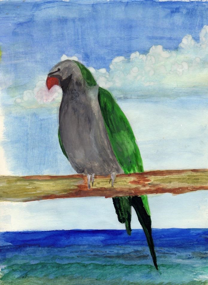 У моей добрейшей бабушки была сестра, вовсе не такая замечательная, как моя бабуля. А у сестры был муж-капитан торгового флота. Во время одного из флотско-торгового вояжа около берегов Африки привёз он попугая, большого по размерам и очень цветного по оперению. Попугай был уже не очень молодым по людским меркам, но очень даже ничего по птичьим. Было ему не больше 100 лет.