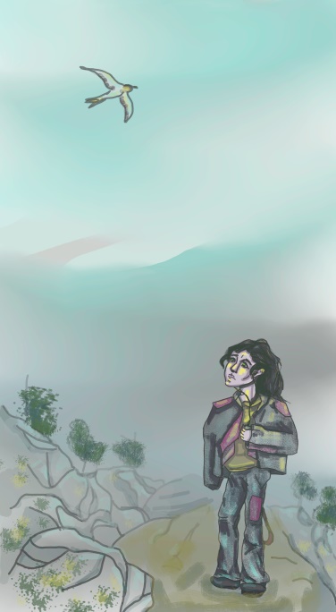 «Море, здесь должно быть море, – подумала я. – Но где же оно?». Так я и стояла посреди дороги, вспоминая, как можно найти море, как вдруг я услышала у себя над головой крик чайки и подняла голову. Белая птица покружила надо мной, а затем полетела в сторону замка, и вскоре скрылась в дали. Мне пришлось возвращаться, и идти вслед за чайкой. Шла я очень долго: сначала по дороге, потом мимо замка, затем по лесу… Я уже думала бросить эту затею, как лес кончился, я поднялась по крутому склону, и оказалась на высоком утёсе, который, как нос корабля, смотрел в море. Радуясь этой находке, я стала искать путь, чтобы спуститься к воде. Утёс подмывался волнами, и часть его от этого осыпалась в воду, и большие серые камни выглядывали из глубины. Только по этим камням вниз – другого спуска к воде не было, и я немало рисковала. Мои ноги то и дело соскальзывали, камни осыпались вниз, а море угрожающе гудело внизу. Но я всё же смогла спуститься без особых повреждений – только расцарапала колени и ладони.
