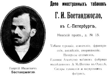 В 1903 году известностью пользовался табачный магазин московского «Товарищества М. И. Бостанджогло» на Невском пр., 54 (одна из старейших табачных фирм в России, основана в 1820 году); эта фирма имела магазины розничной торговли в нескольких городах России. И. Г. Эренбург в цикле рассказов «Тринадцать трубок» вспоминает «папиросы, изготовляемые фирмой Бостанджогло из легчайших сортов дюбека». В начале XX века на Невском пр., 15, находилось «депо иностранных Табаков» Георгия Ивановича Бостанджогло, у которого в большом выборе были табаки турецкие, египетские, французские, английские, американские, а также сигары гаванские и «внутренних фабрик».
