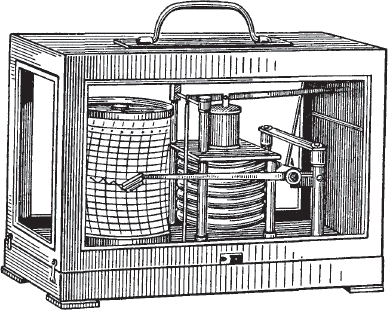 Барограф метеорологический – прибор для регистрации изменения атмосферного давления за промежуток времени. Он относится к классу самописцев (видимо из – за того, что пишет сам) и состоит из множества деталей: блока мембранных анероидных коробок; – передаточного механизма; – регистрирующей части (стрелка с пером и барабан с часовым механизмом); – температурного компенсатора; – корпуса.