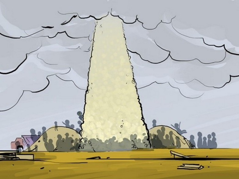 Башня. Шириной с торговый центр в основании, уходящая небо на головокружительную высоту. Верхушки не видно – она скрывалась за облаками. Башня была грязно-белого цвета и текстуры грубого камня. В ней не было ни окон, ни архитектурных деталей, ни цветного декорирования, как будто строителей абсолютно не волновало, как её воспримет человеческий глаз.