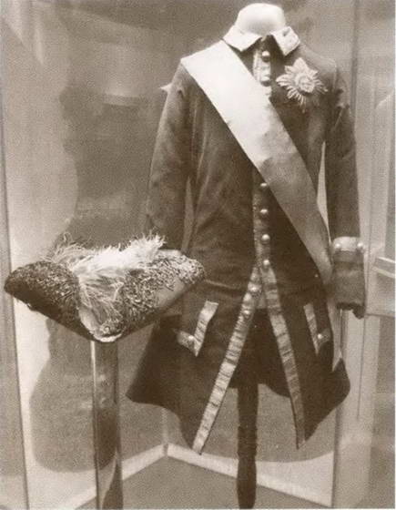 Мундир обер-офицера лейб-гвардии Семеновского полка, в котором Екатерина II возглавила поход гвардии на Петергоф 28 июня 1762 года