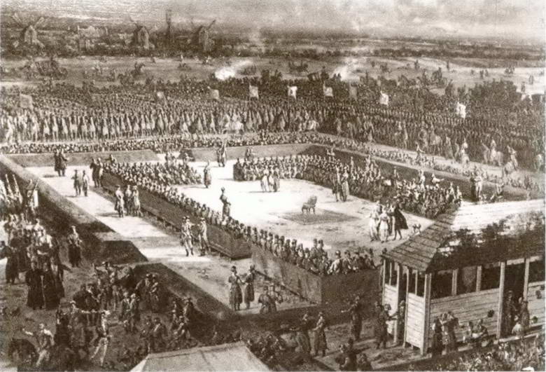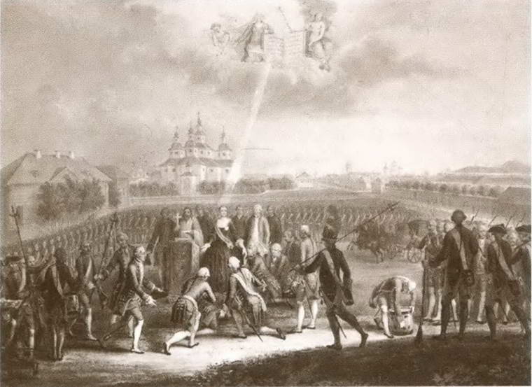 Присяга Измайловского полка Екатерине II. Неизвестный художник. Конец XVIII-первая треть XIX в.