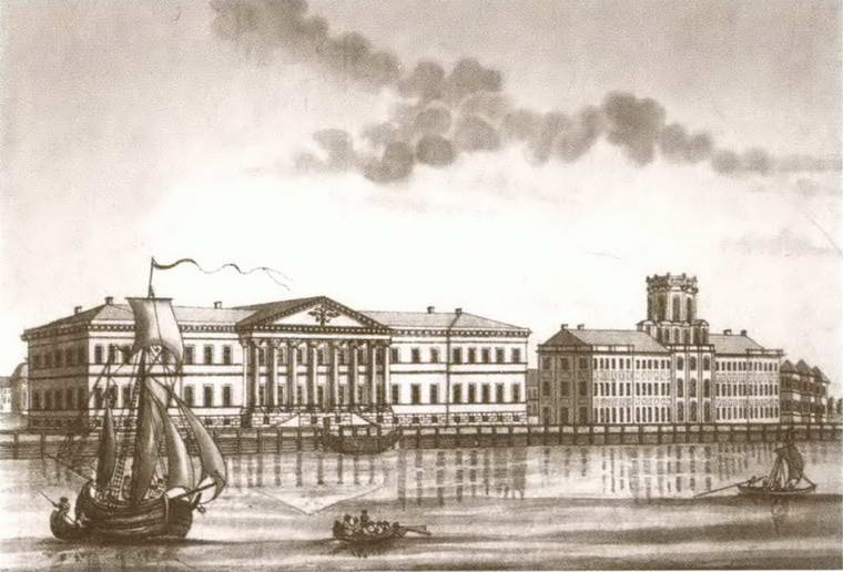 Императорская академия наук в Петербурге. Гравюра неизвестного художника. Конец XVIII в.