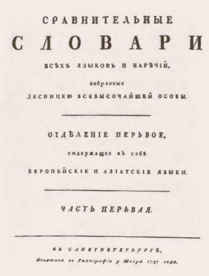 Титульный лист «Сравнительного словаря всех языков и наречий». 1787 г.