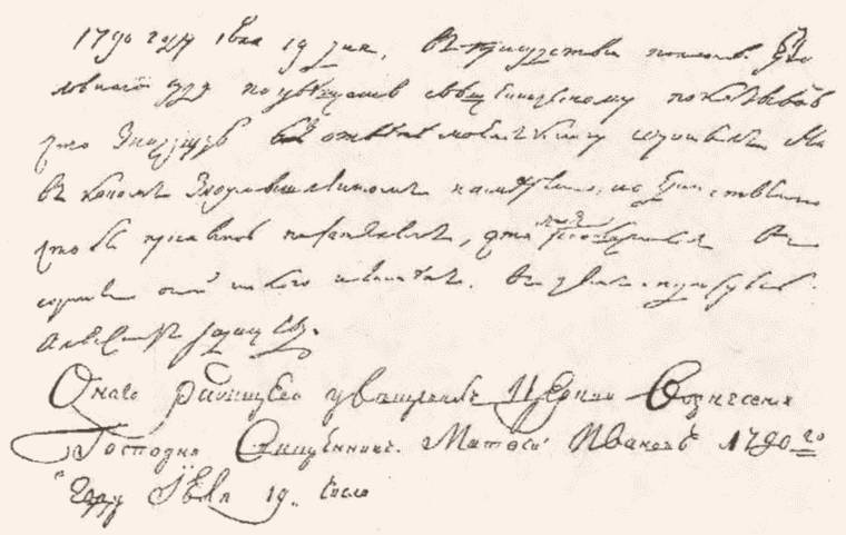 Автограф А.Н. Радищева. Показания в присутствии уголовного суда о книге «Путешествие из Петербурга в Москву»