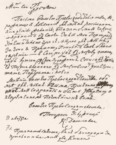 Письмо Е.Р. Дашковой в Российскую академию наук. 21 августа 1808 г.