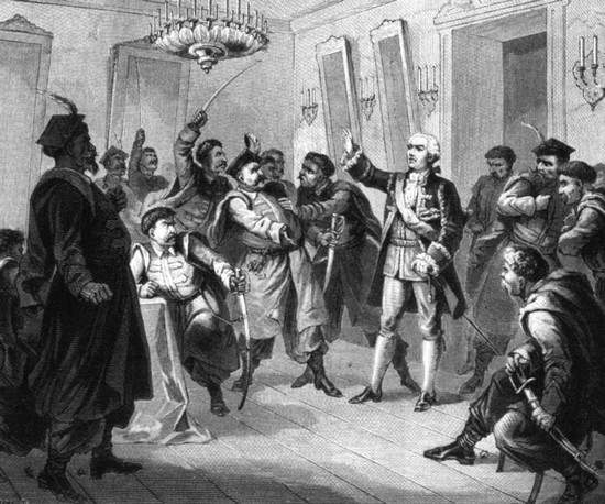 Н. А. Репнин на Польском сейме выступает против шляхетской оппозиции. Р. Н. Негодаев. Гравюра. XIX в.