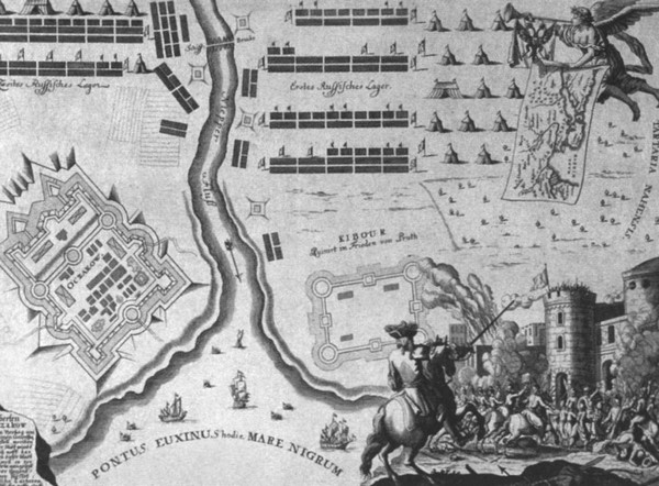 Штурм Очакова. Неизвестный художник. Раскрашенная гравюра. 1789 г.