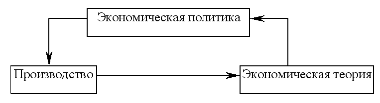 Взаимная связь этих функций проявляется во взаимодействии экономической политики, хозяйственной практики и науки, которую отражает схема 1.