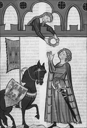 Рыцарь и дама. Средневековая книжная миниатюра