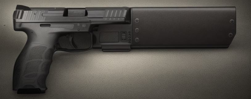 [ИИ-иллюстрация, Glock 23 Gen 5 с коробчатым глушителем]
