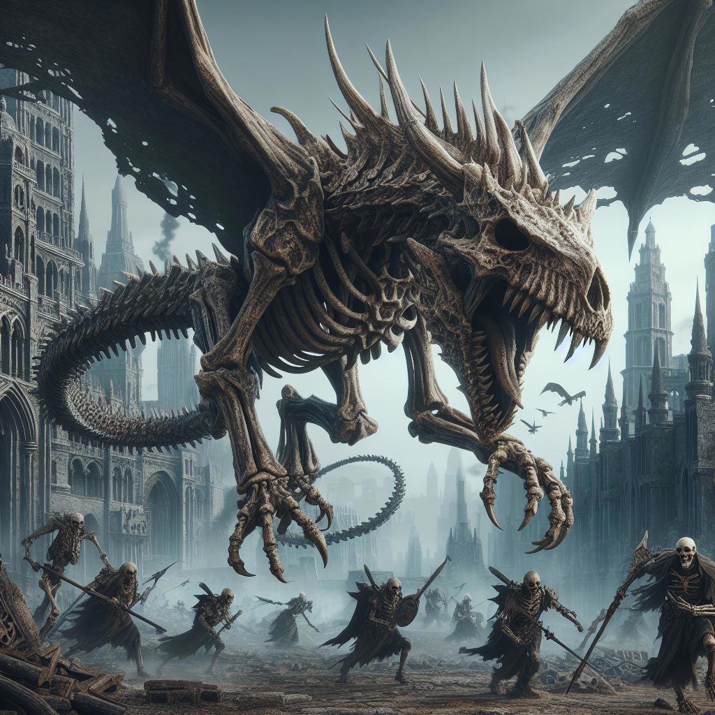 [ИИ-иллюстрация, Немёртвый дракон и армия нежити]