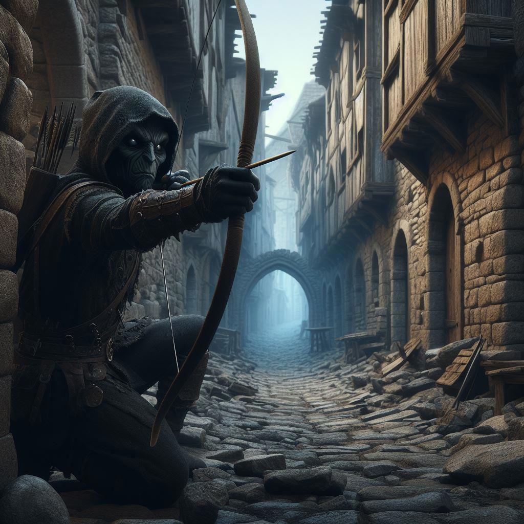 План родился быстро. Лук — не пулемёт, между выстрелами проходит несколько секунд. А основная толпа гоблинов уже с другой стороны здания. Сделав максимально тупое и испуганное выражение лица я продолжал оглядываться во все стороны. 6... 7... 8... Треньк!