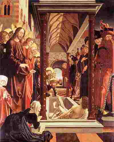 Стефан Лохнер (между 1400 и 1410–1451) родился в Меербурге (Швабия). В 1442 г. мастер обосновался в Кёльне, где создал собственный стиль, прославивший впоследствии кёльнскую школу. Для его произведений характерны особая тонкость письма, изысканность в чередовании ярких и приглушённых красочных пятен, богатство одежд и украшений, величавый покой и аристократичное бесстрастие персонажей. Самым знаменитым произведением мастера является картина «Мадонна в беседке из роз».