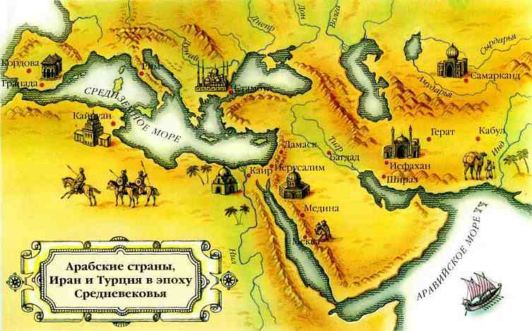 В первой трети VII в. в городе Мекке (на западе Аравийского полуострова, ныне — Саудовская Аравия) возникла новая религия — ислам. Основатель ислама Мухаммад (около 570–632), выходец из мекканской купеческой среды, осознал себя Пророком в сорокалетнем возрасте. В своих проповедях и наставлениях он передавал воспринятые им божественные откровения (сначала в Мекке, а затем в Медине — городе, расположенном к северу от Мекки, где он прожил последние десять лет своей жизни). Проповеди Мухаммада позднее были записаны и составили Священную книгу мусульман (последователей ислама) — Коран. С утверждением новой религии Мекка стала священным городом мусульман.