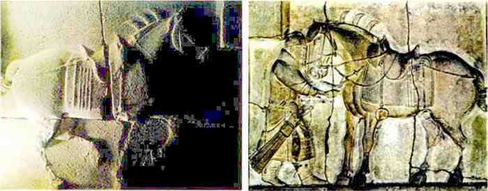 Погребения императоров Ганского царства были украшены скульптурой и рельефами на темы реальной жизни. Особое место в погребальной скульптуре по праву принадлежит фигурам животных. Горделивые верблюды, сопровождаемые бородатыми кочевниками, везут дань ко двору императора; павлины распускают пышные хвосты; собаки лают; кони ржут, грызут удила и бьют копытами. Сохранилось, например, шесть каменных плит с рельефным изображением любимых коней императора Тай Цзуна (VII столетие). Рельефы выполнены с таким мастерством, что в породистых мордах животных ощущается трепет живых мускулов, а в стремительном беге — напряжение и грация.