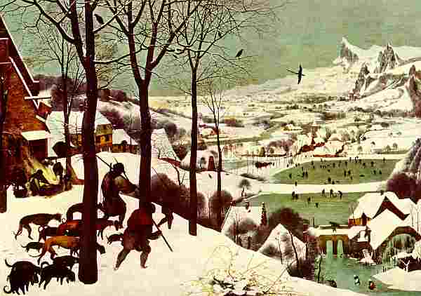 В «Месяцах» художник начинает выводить на первый план укрупнённые фигуры людей. Это крестьяне, занятия которых естественно подчинены смене времён года. Таким образом, человек выступает как органическая часть природы. Все пейзажи не только величавы, но и по-своему уютны. Даже в заснеженной равнине есть что-то домашнее, ибо повсюду видны следы близости людей — трактир, запруда, колокольня. Такова приветливая земля Нидерландов, жители которых лучше других народов обживали природу, не нанося ей вреда. Питер Брейгель умеет показывать зрителю самые простые вещи как чудо. Картинам «Месяцев» созвучны слова философа и писателя Эразма Роттердамского (1469–1536): «Бог способен явить любые чудеса — в нарушение законов природы, но ежедневно творит чудеса намного большие… Эти чудеса в естественном ходе вещей, т. е. в самих законах природы, которые нам привычны, и поэтому мы не замечаем их чудесности».