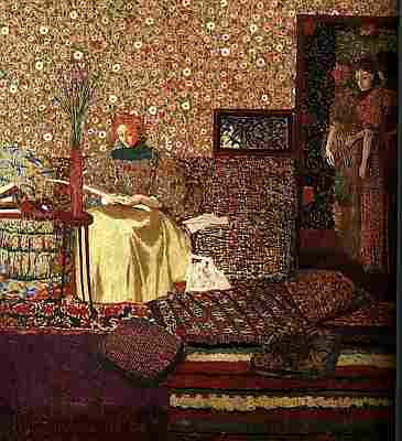 В 90-х гг. художник получил несколько заказов на оформление интерьеров жилых комнат. Лучшей работой стали четыре панно для библиотеки в доме его друга Вакеса. Они как бы продолжили интерьер, повторив рисунок и цвет обоев и ковров, форму мебели и расстановку предметов. Так получилась удивительная по красоте и сложности живописная сюита, где исчезает грань между реальностью и изображением, цветы со стен переходят на полотно, а подушки могут выпасть из пространства картины на деревянный пол библиотеки («Читающая», 1896 г.).